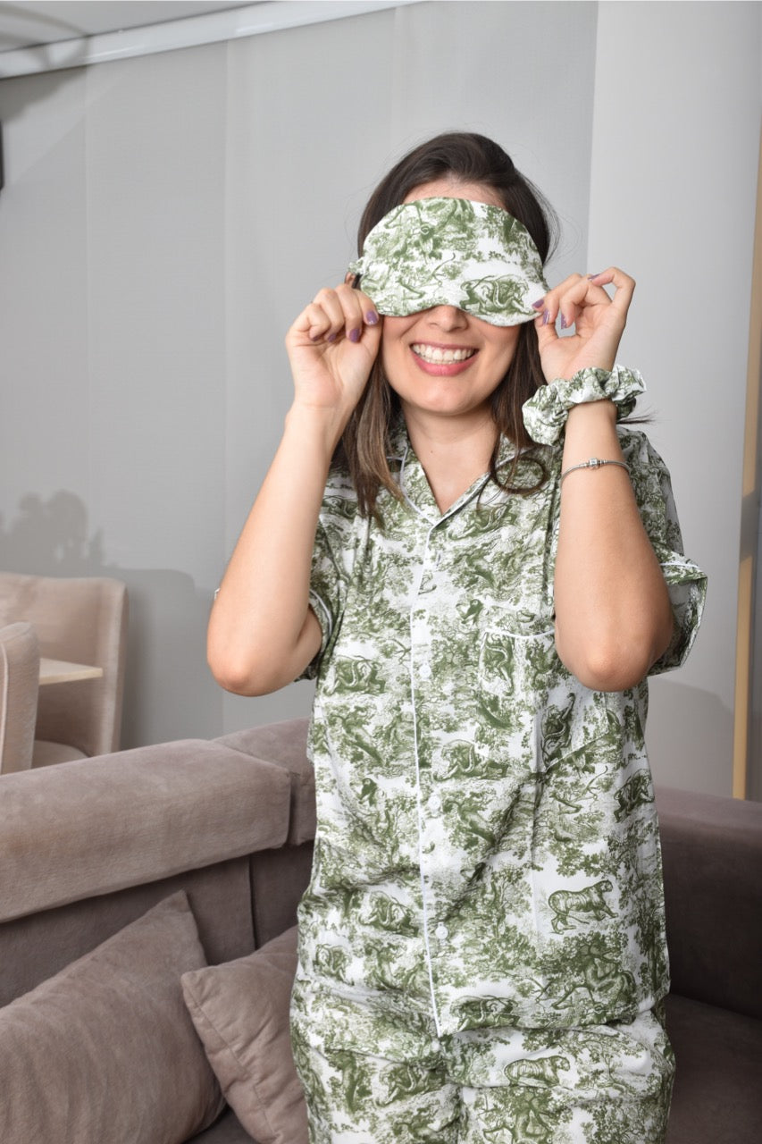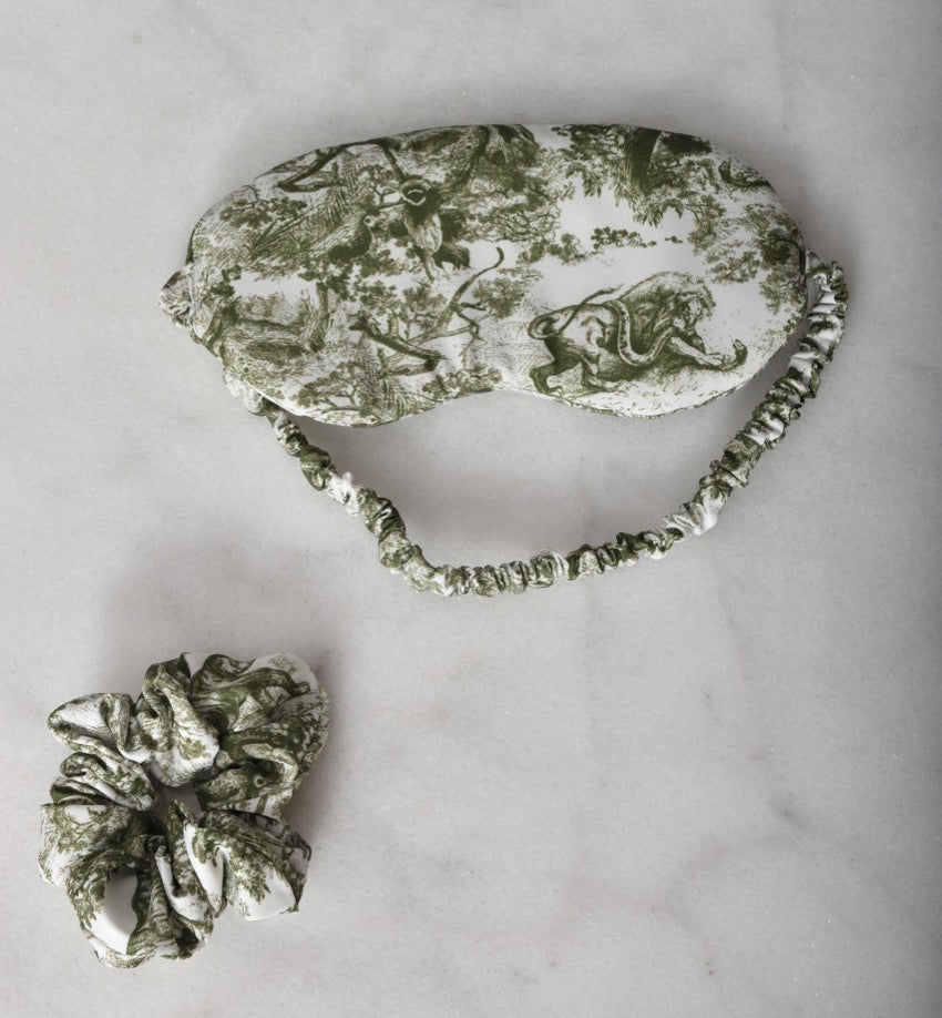 Elaboramos un antifaz para dormir de nuestra colección Selvah lo puedes colocar sobre tus ojos cuando te metes en la cama.