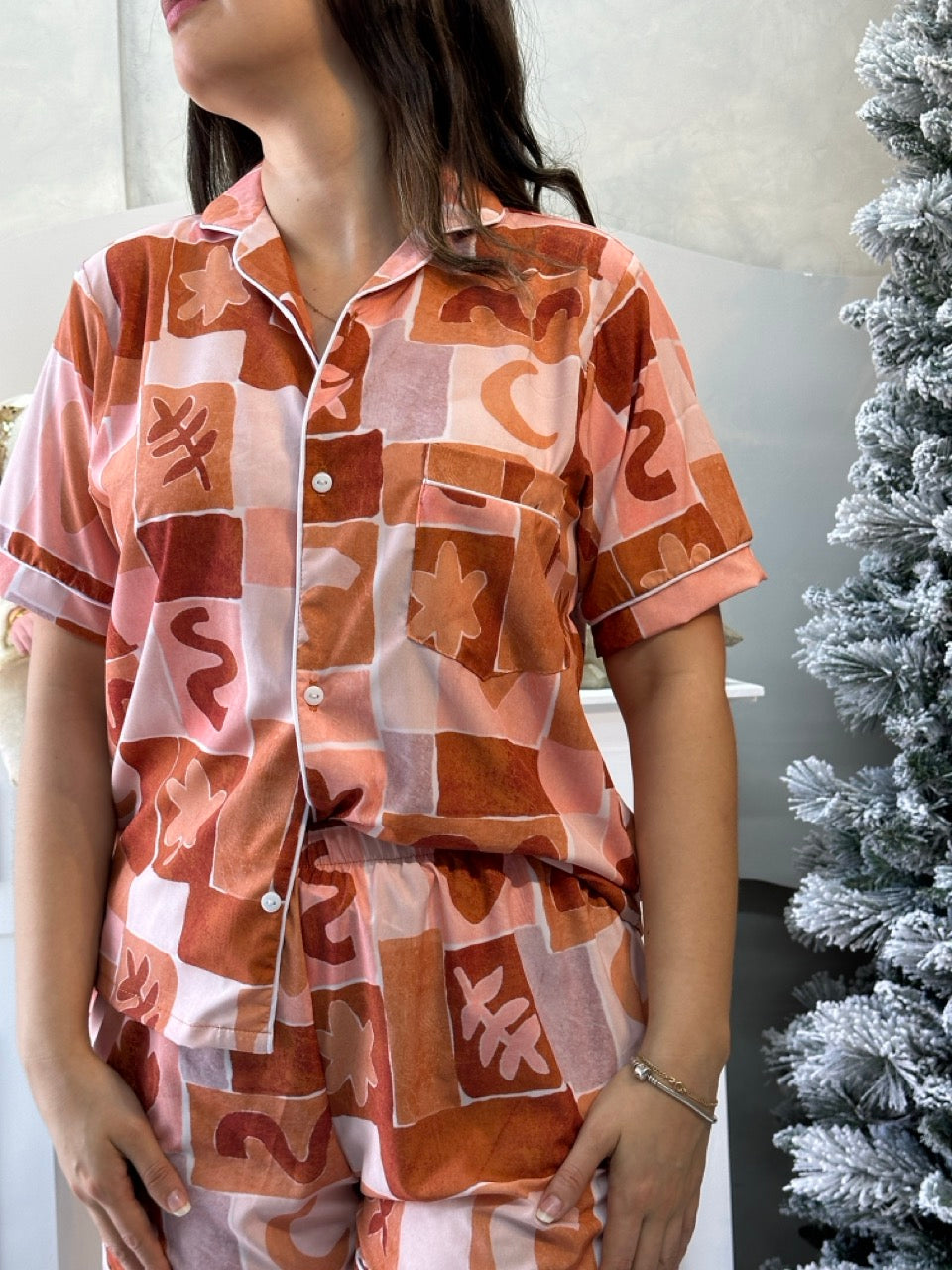 Pijama Short Camisa Botones | Corazones
